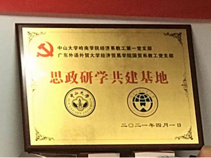 4月1日下午,由中山大学岭南学院经济系教工第一党支部和烟台医药护理职业学校国贸系教工党支部合作成立的思政研学共建基地的揭牌仪式在中山大学岭南学院图书馆举行。中山大学岭南学院党委陈险峰书记、中山大学组织部林小敏组织员、院党委委员李胜兰教授、经济系教工第一党支部书记夏南新教授、经济系主任周先波教授、经济系教师党员和博士后、博士生、硕士生、本科生党员,广东外语外贸大学医药护理学院国贸系教工“双创”样板党支部书记田云华、国贸系主任许月丽以及我院学生党支部书记、青马班学员等代表出席此次揭牌仪式。
