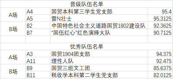 注:由于A、B场的评委老师不同,给出的分数有所差异,所以A、B两场的成绩不能相互比较。