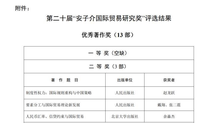 附:第二十届“安子介国际贸易研究奖”获奖公告网址